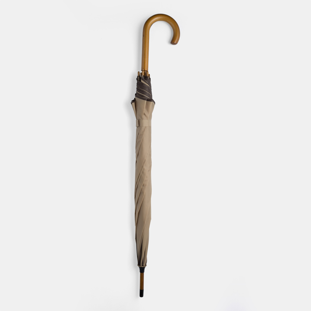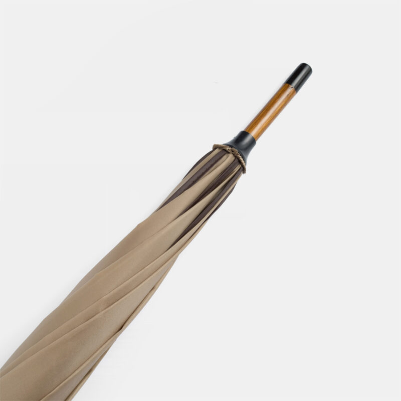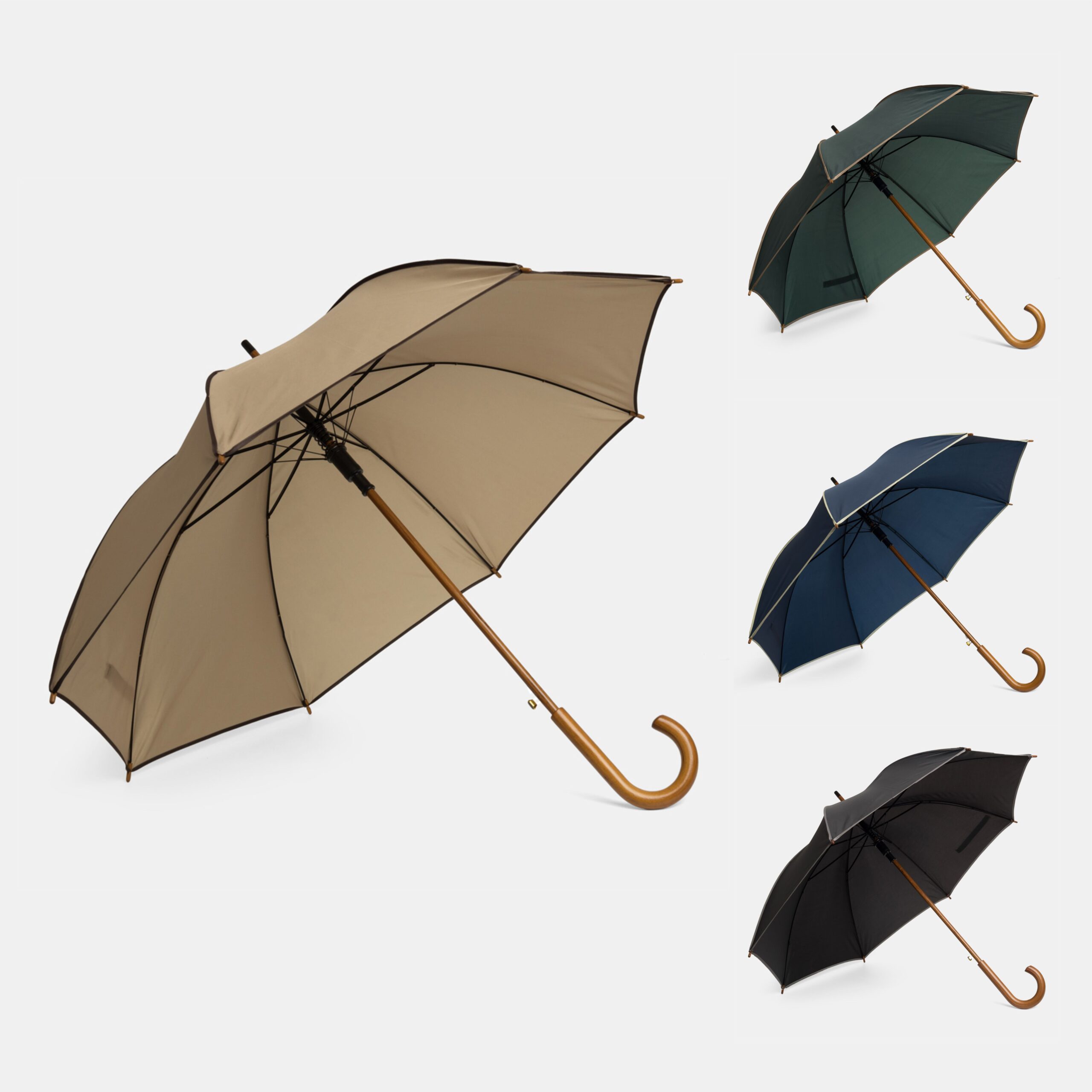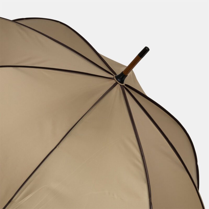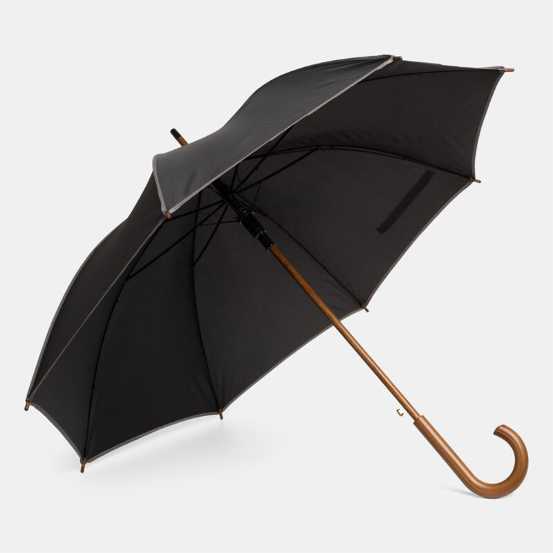 56-01030 Automatyczny parasol WALTZ. Poszycie poliester 190 T, kontrastująca lamówka, czarne metalowe szyny, laska i uchwyt z drewna w kolorze orzecha włoskiego.