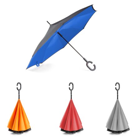 56-0103 Automatyczny parasol sztormowy WIND z gumowanym uchwytem, poszycie z wysokiej jakości poliestru pongee, mocny automatyczny stelaż, odporny na wiatr, metalowa laska lakierowana na kolor czarny.
