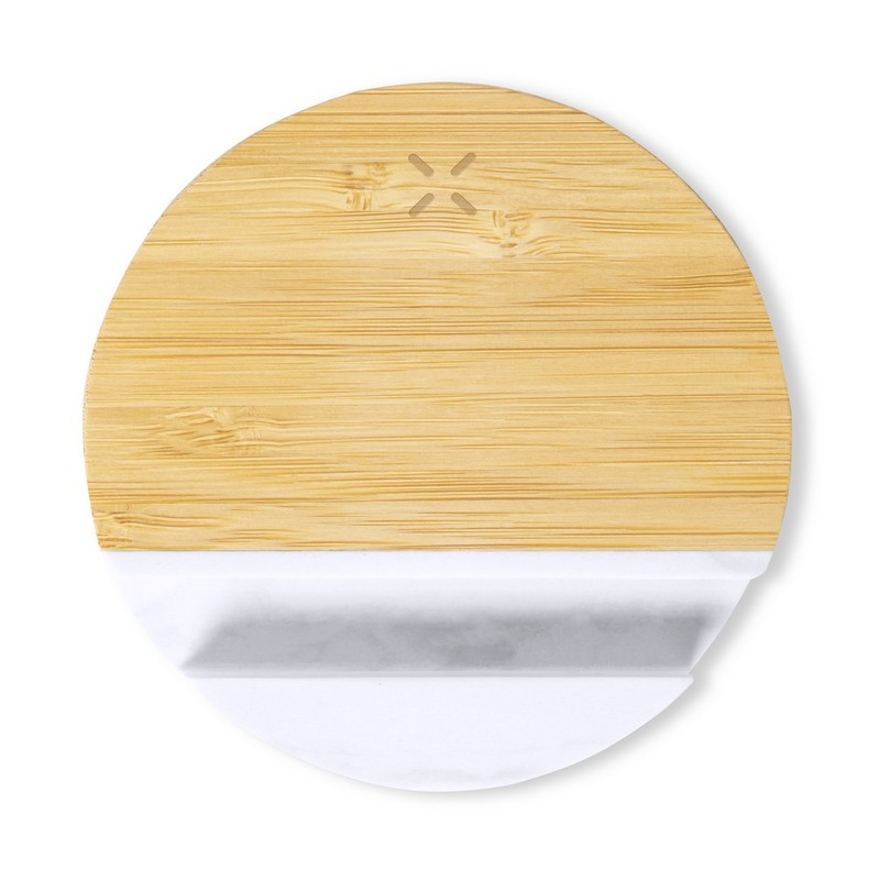 V1135 Bambusowa ładowarka bezprzewodowa 15W, działa z telefonami posiadającymi możliwość ładowania indukcyjnego, stojak na telefon wykonany z ekstraktu z marmuru, wejście USB typu C, kabel USB typu C w komplecie