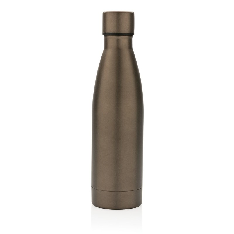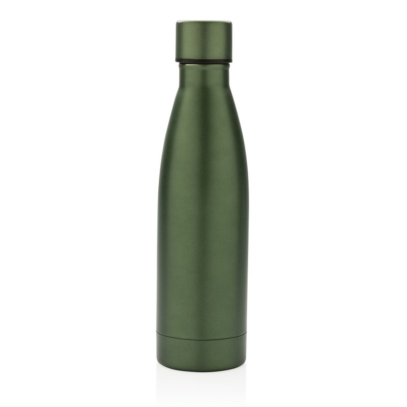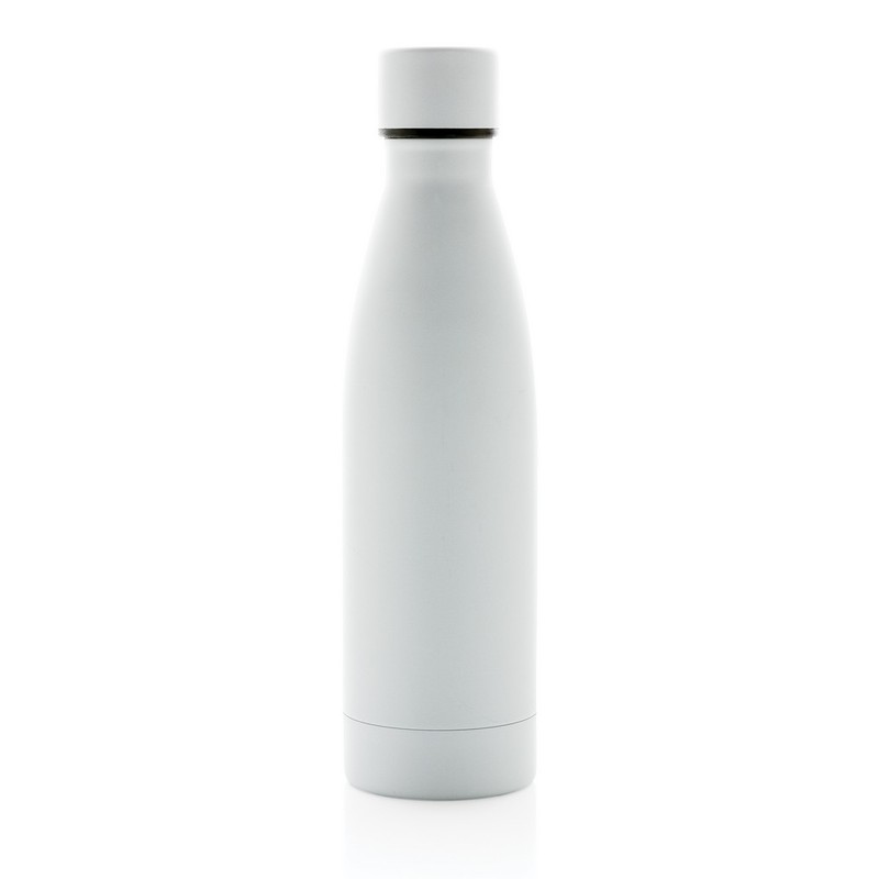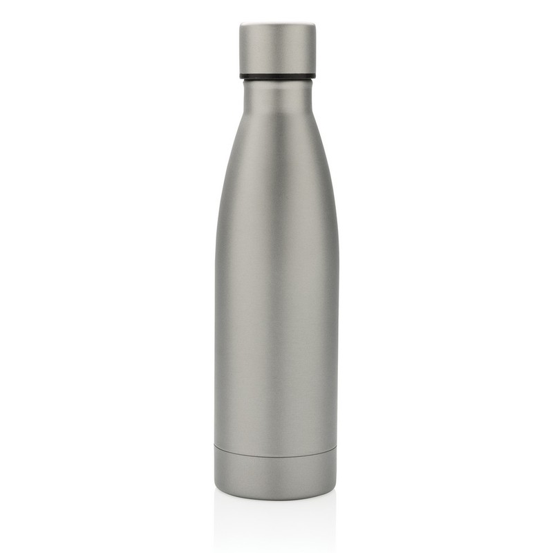 P433.27 Butelka termiczna 500 ml, podwójne ścianki z próżnią pomiędzy, utrzymuje temperaturę napojów ciepłych do 5 godzin oraz zimnych do 15 godzin, wykonana ze stali nierdzewnej z recyklingu z certyfikatem RCS (Recycled Claim Standard) który gwarantuje, że wykorzystane materiały pochodzą z recyklingu, całkowita zawartość materiału z recyklingu obliczona w oparciu o wagę całkowitą przedmiotu: 93%, pasuje do większości uchwytów samochodowych, w pudełku z papieru kraftowego z certyfikatem FSC® (Forest Stewardship Council), klasa termiczna: A