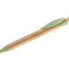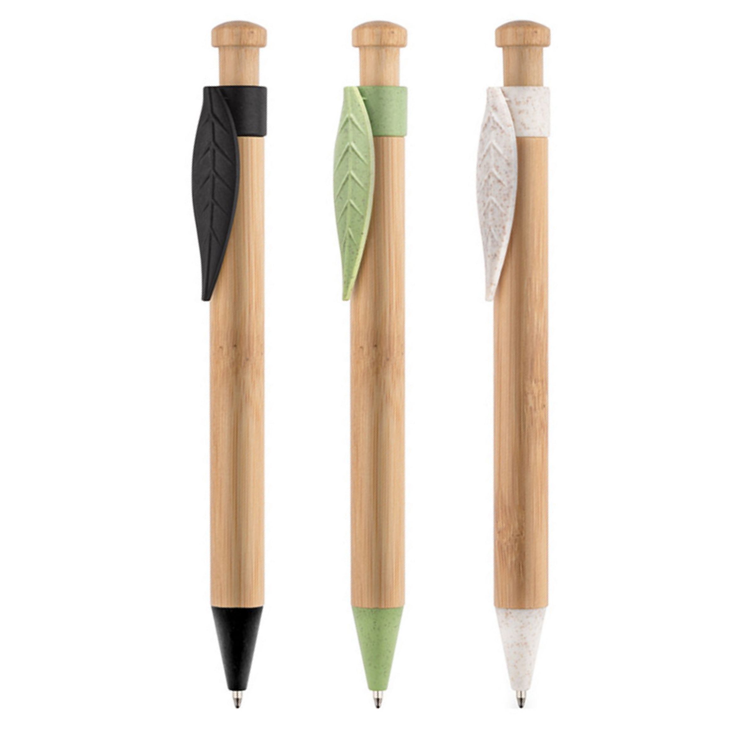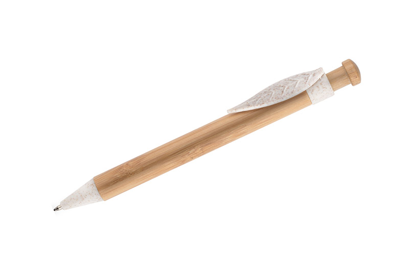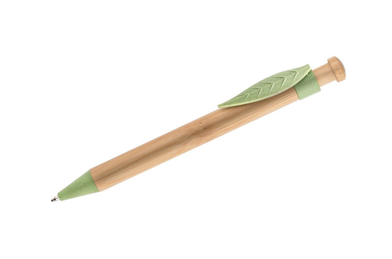 BC19649 Długopis FOLL został wykonany z myślą o wszystkich, którym bliska jest idea używania naturalnych surowców. Korpus tego długopisu wykonany jest z naturalnego bambusa, a klip i końcówki z tworzywa wykonanego w 40% z naturalnej słomy. Do idei ochrony środowiska nawiązuje też klip w kształcie liścia. Długopis automatyczny. Wkład typu X20 w kolorze niebieskim.