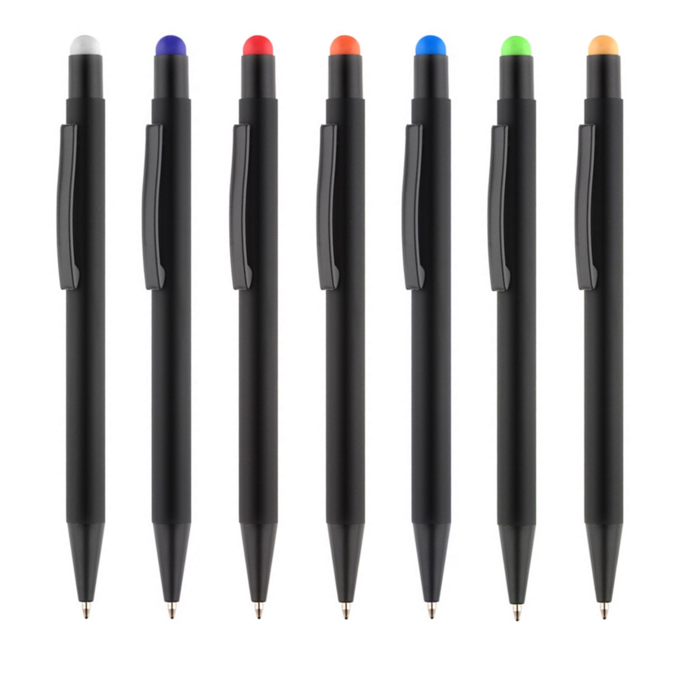 BC19656 NIRO to długopis z wyjątkowym efektem znakowania. Kolor grawera jest zbliżony do koloru końcówki touch do obsługi ekranów dotykowych. Korpus wykonany z aluminium pokrytego gumowaną powłoką typu soft touch. Wykończenia w kolorze czarnym. Długopis automatyczny. Wkład typu G2 w kolorze niebieskim.