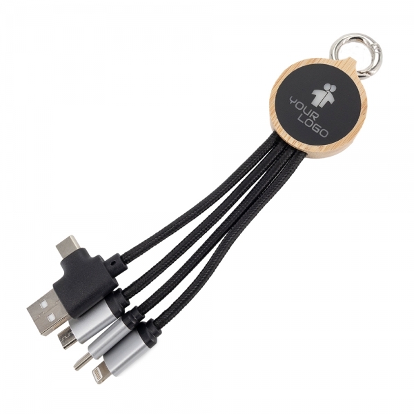 EG059213 Kabel do ładowania z 3 końcówkami: micro USB, lightning i type-C. Po wygrawerowaniu logo jest podświetlone od spodu wejściem typu A orac C.