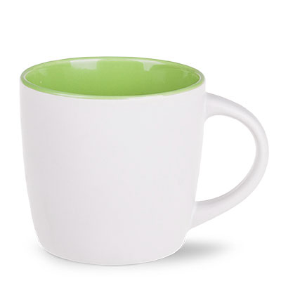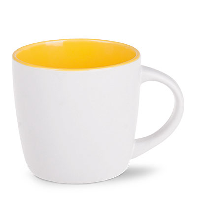 M_132 Nowoczesny kubek reklamowy o charakterystycznym obłym kształcie. Białe matowe szkliwo na zewnątrz idealnie współgra z kolorowym, błyszczącym wnętrzem. Kubek dostępny w 7 wersjach kolorystycznych. Młodszy brat bestsellerowego Handy Supreme.