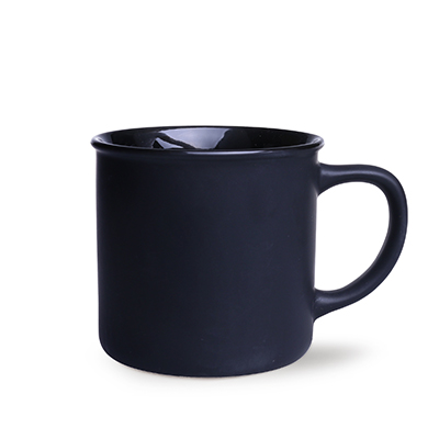 M_461 Mały z wyglądu, lecz o dużej pojemności kubek ceramiczny o czarnej, matowej powierzchni zewnątrz i kolorowym środku.