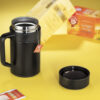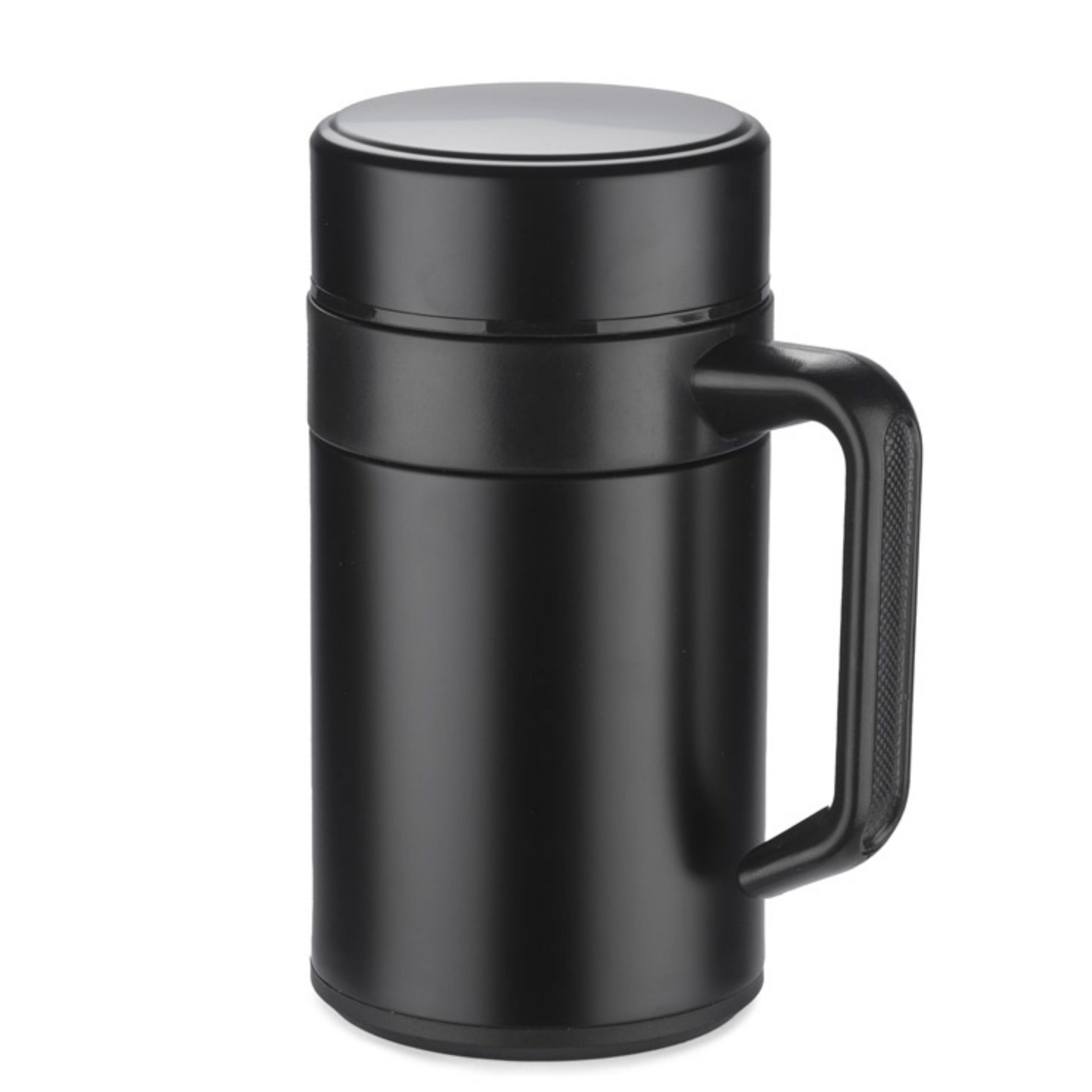 BC16028 Kubek termiczny BOSSKI to bardzo wygodny w trzymaniu kubek z dużym uchwytem z tworzywa. Wykonany jest ze stali nierdzewnej o podwyższonym standardzie, posiada dwie ścianki rozdzielone próżnią więc utrzymuje temperaturę napoju do 12 godzin. Kubek otwiera się poprzez odkręcenie. Posiada silikonową uszczelkę, co zapobiega wylaniu się napoju.