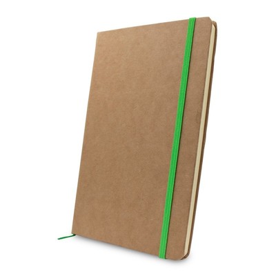 V0244 Notatnik (ok. A5, 96 kremowych kartek 70 g/m2 w linie), wykonany z papieru makulaturowego, twarda okładka, tasiemka zakładkowa, elastyczna opaska do zamykania.