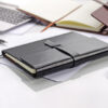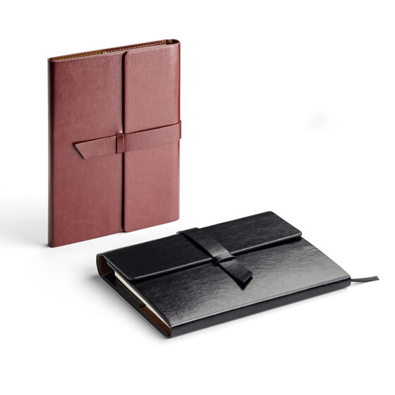 BC17677 VASCO to elegancki notes formatu A5 w klasycznej okładce wykonanej z ekoskóry. Notes zawiera 80 kartek w linie oraz praktyczną wstążeczkę – zakładkę. Wewnątrz okładki miejsce na 3 wizytówki, długopis oraz pamięć USB. Okładka nie jest umocowana na stałe do bloku notesu, tylko nasuwana na pierwsze kartki, co daje możliwość wymiany notesu. Notes zamykany za pomocą paska z ekoskóry.