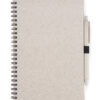 BC18000 Notes TRESA z długopisem, kolorystyką dopasowanym do okładki. Długopis oraz okładka notesu wykonane są ze słomy pszenicznej. Notes na spirali, posiada 70 kartek w kratkę wykonanych z recyklingowanego papieru. Format A5. Wkład w długopisie w kolorze niebieskim.
