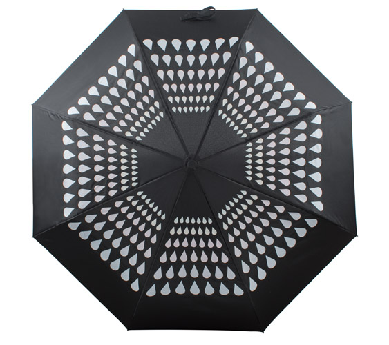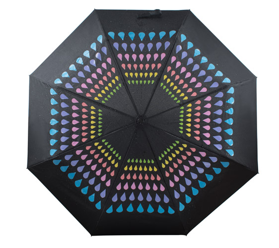 BC37049 Składany parasol manualny CROPLA to bardzo efektowny gadżet. Posiada zaprojektowany przez grafików Blue Collection nadruk zmieniający kolor pod wpływem wody. Parasol ma metalowy stelaż i jest wykonany z poliestru pongee 190T.