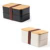 V8217 Pudełka śniadaniowe 2 szt., 2×700 ml, w komplecie: widelec, nóż, łyżka, bambusowe wieczko, połączone paskiem