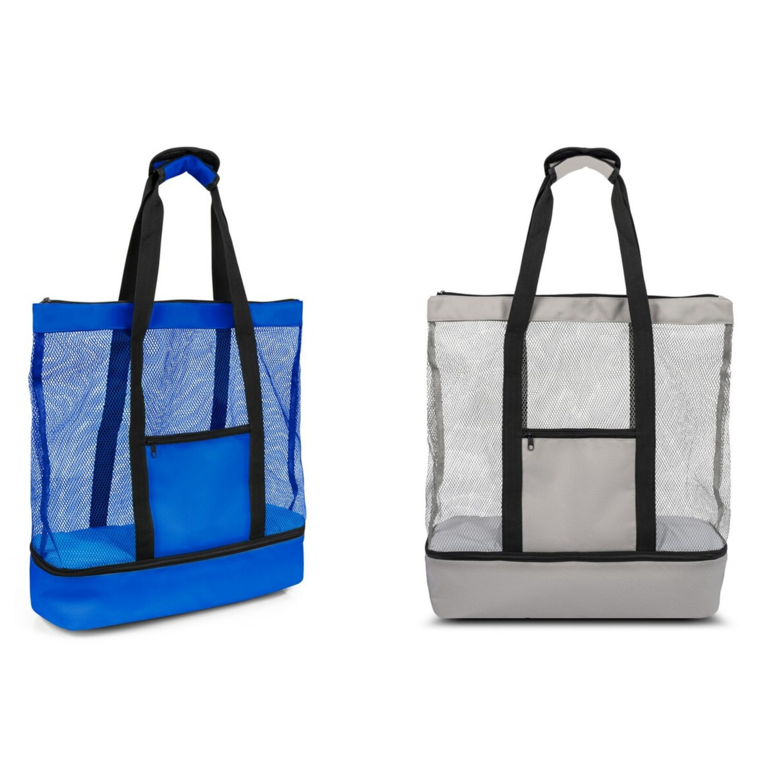 V7292 Torba plażowa, na zakupy, wykonana z poliestru RPET, posiada certyfikat GRS (Global RecycIed Standard), z dolną przegrodą termoizolacyjną na zamek błyskawiczny, przednia kieszeń i siateczkowa przegroda główna na zamek błyskawiczny