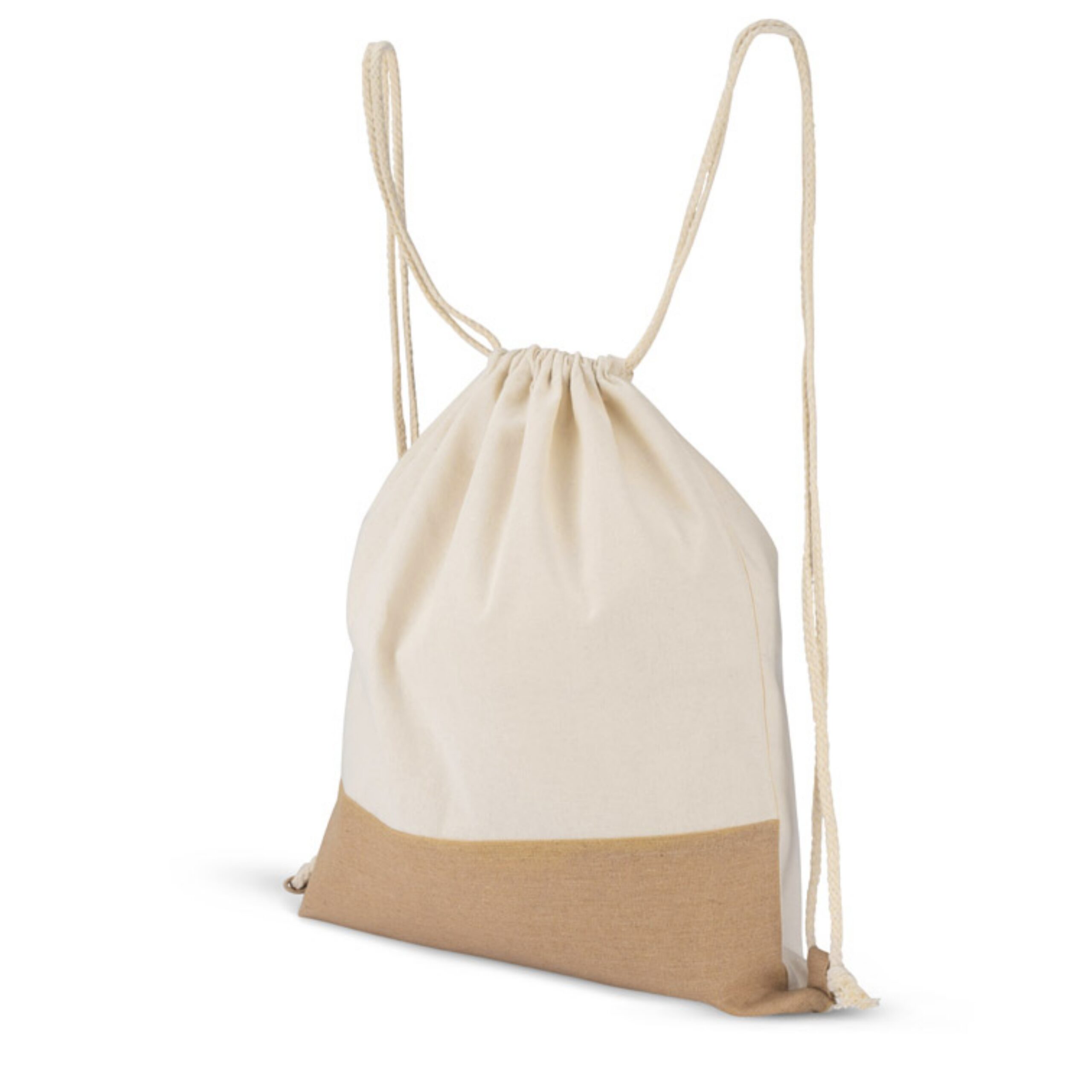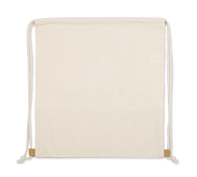 BC20602 Worek JUTIK wykonany jest z bawełny (160g/m2) połączonej z materiałem podobnym do juty. Całość wygląda bardzo naturalnie i ciekawie. Worek jest jednokomorowy, zaciągany na bawełniane sznureczki.