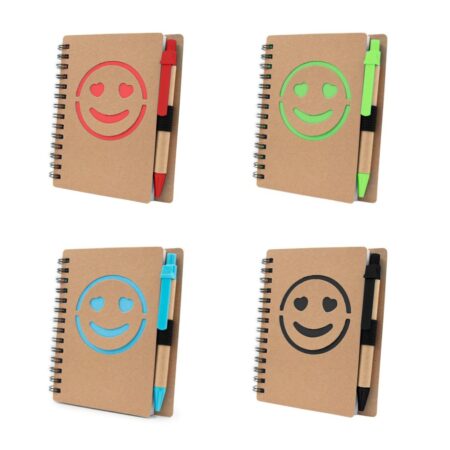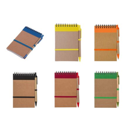 V2389 Notatnik (ok. A5, 60 kartek w linie), dołączony biodegradowalny długopis, spiralne bindowanie.